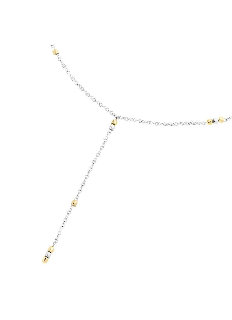 Collana lariat mini Granelli in argento 925 e oro giallo 18K. Ispirata ai granelli di sabbia, Granelli è la collezione più iconica di DoDo. Scegli tra anelli, bracciali, collane il gioiello che fa più per te. Le forme organiche e leggere donano a Granelli una finitura irregolare che sembra essere stata levigata dal vento e dal mare.